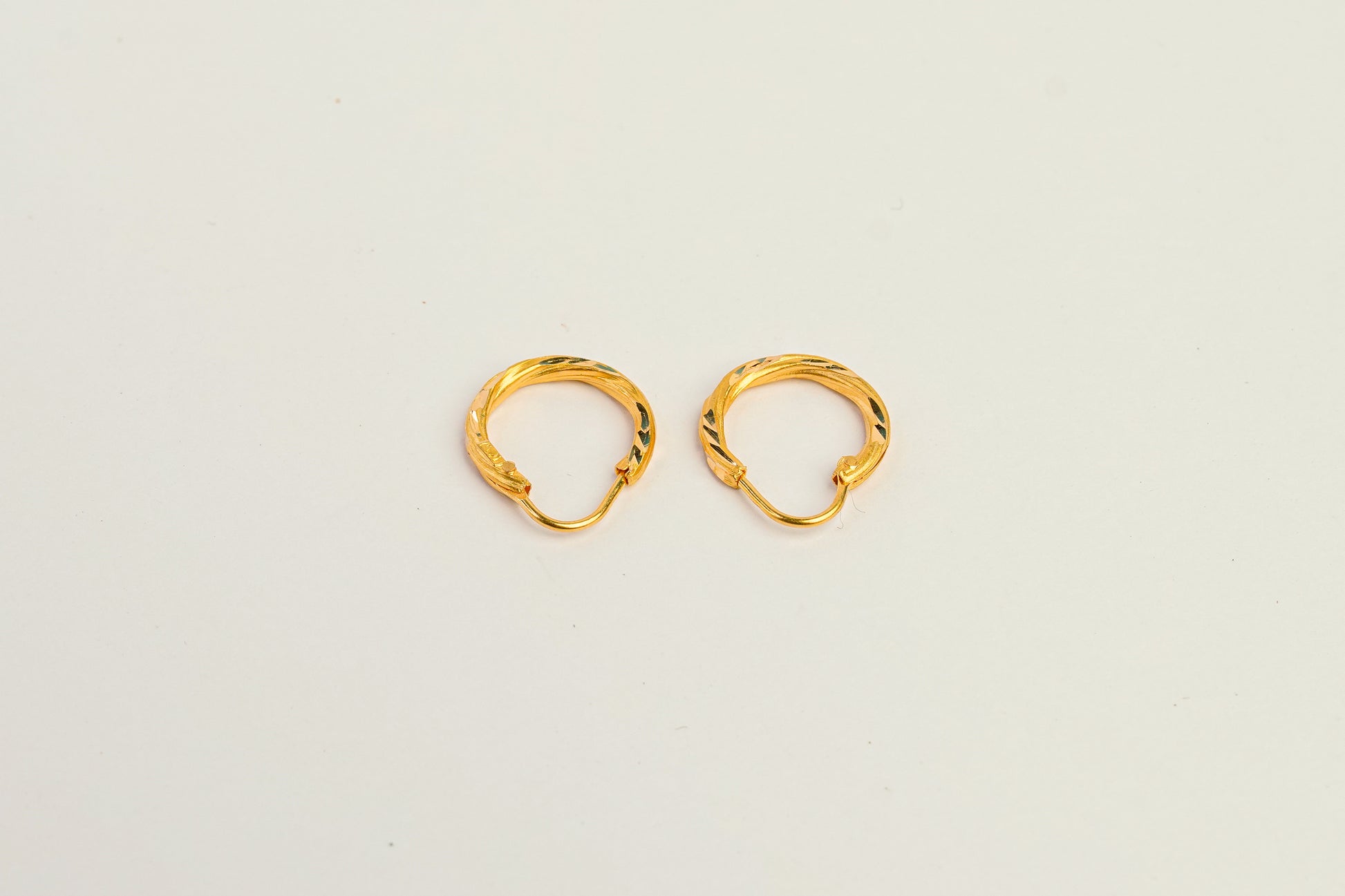 These Al Syed Gold hoop earrings exude grace with their elegant design. Their classic shape and refined finish make them a perfect accessory for any ensemble.