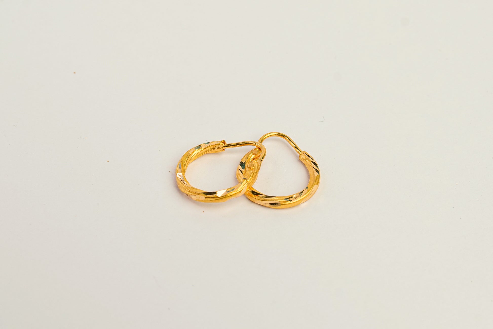 Discover artistic flair with these Al Syed Gold small hoop earrings, designed with a bold, textured pattern. Their distinctive surface adds a creative touch to your jewelry collection.