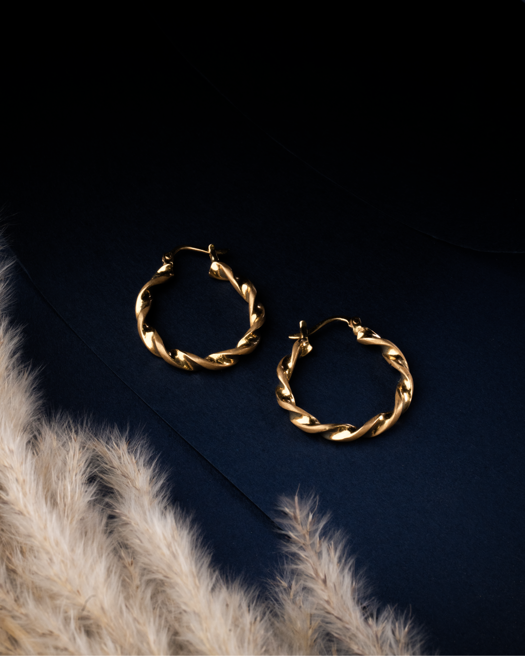 Twisted hoop from Al Syed Gold, light and graceful like a morni’s swirl.