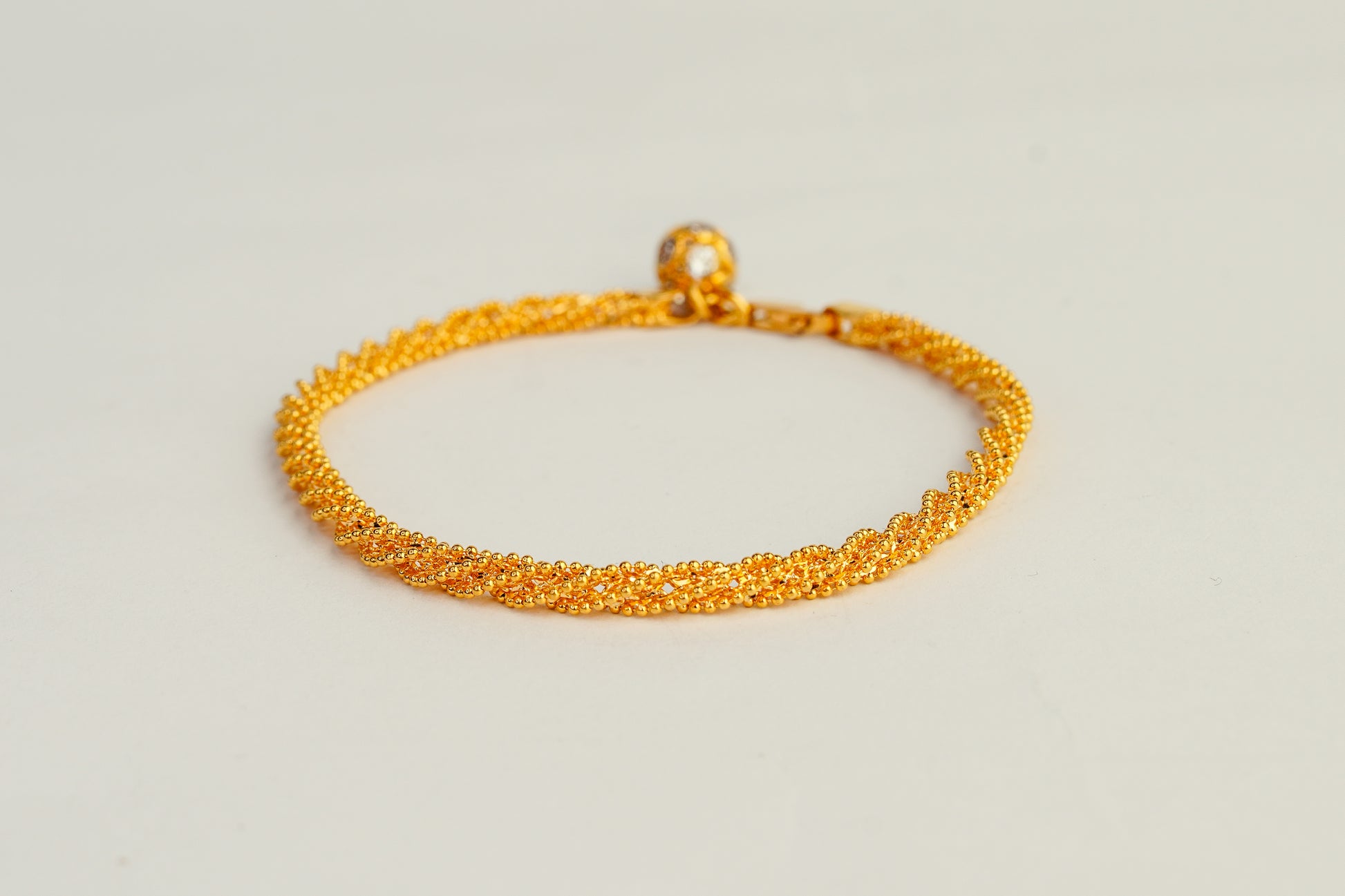 Discover the charm of sophistication with Al Syed's braided gold bracelet, adorned with a delicate charm. A perfect blend of elegance and style, this bracelet is designed to enhance your everyday look.